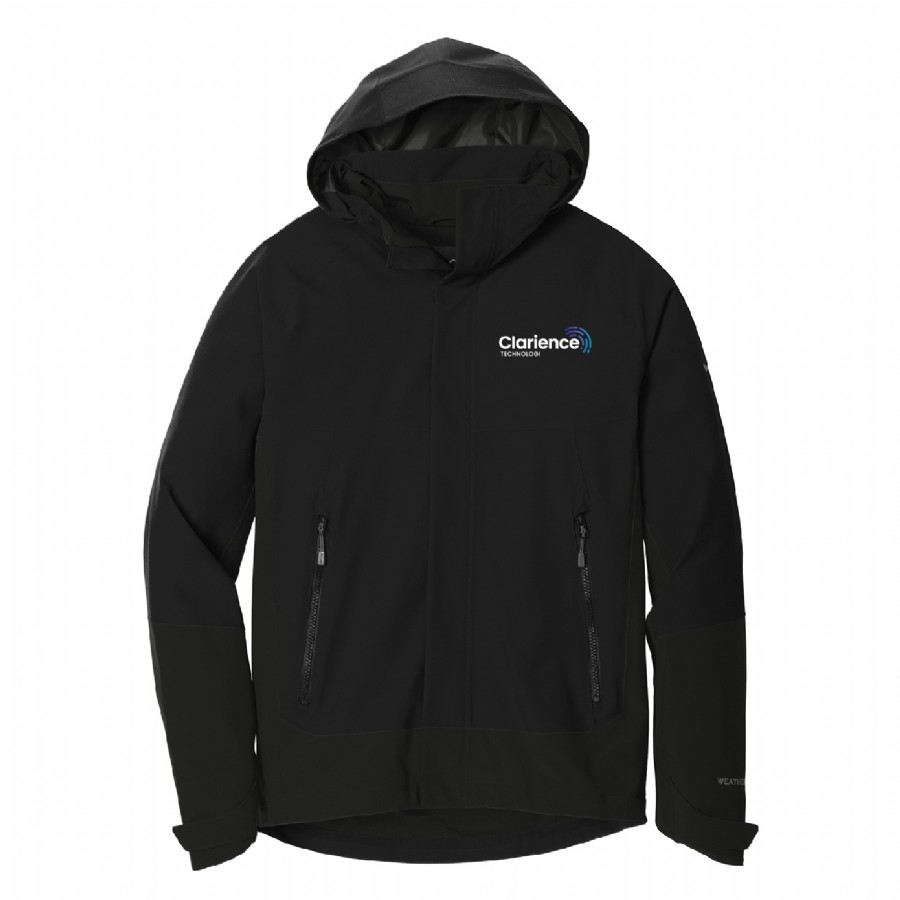 Two element-fighting WeatherEdge 5K/5K fabrics come together in this jacket for highly waterproof, breathable performance. Fully seam-sealed, this jacket also features an exclusive StormRepel durable water-repellent (DWR) coating for additional weather protection. Four-way stretch for easy mobility. Adjustable hood with locking drawcord, waterproof molded front zippered pockets, adjustable tab cuffs with hook and loop closures, embroidery access pocket. Adjustable locking drawcord hem. Contrast Eddie Bauer and WeatherEdge heat transfer logos on left sleeve. Made of 94/6 poly/spandex and 92/8 poly/spandex.