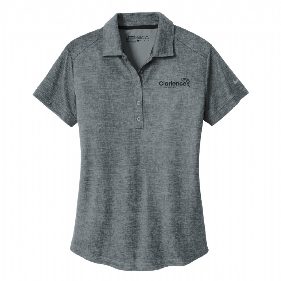 The allover crosshatch print adds a technical look to this polo, while the Dri-FIT fabrication delivers performance and ensures breathable comfort. Tailored for a feminine fit. Design details include a self-fabric collar, five-button placket and open hem sleeves. A contrast heat transfer Swoosh design trademark is on the left sleeve. Made of 5.29-ounce, 100% polyester Dri-FIT fabric.
