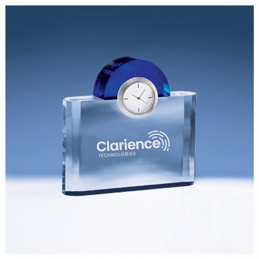 Named for the Cole Por ter classic, our Night & Day Clock is equally rich with style. Architectural lines characterize the look, while the midnight blue semicircle contrasts with the clear optic crystal for a feeling of night and day.